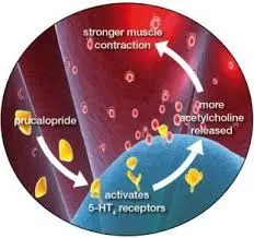 Ce médicament a une action hautement sélective sur les récepteurs agonist 5HT4 de l’intestin, c’est une des raisons qui le rend très sure car il n’agit pas sur les autres récepteurs. Il s’agit d’une substance très efficace qui agit sur tous le tractus digestif. Il est considéré comme la star des prokinétiques et souvent il représente le 1er choix chez de nombreux gastroentérologues américains. Habituellement, il est connu pour le traitement de la constipation à la dose de 1 à 2 mg pris au couché. La dose recommandée comme prokinétique est de 0.5 mg au couché toutefois en cas de constipation on peut utiliser les doses habituelles.