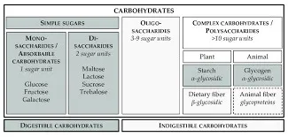 Pour comprendre ce qui différencie les diètes énoncées, il faut améliorer nos connaissances concernant la classification des divers glucides (ou appelés également hydrates de carbone). Les glucides ou hydrates de carbones sont classifiés par la longueur des chaines de sucres qui les composent. Un monosaccharide est composé d’un sucre simple comme le glucose ou le fructose, un disaccharide est composé de deux sucres, le plus connu c’est le lactose. Une chaine courte de sucre composée de 3 à 9 sucres simples est appelée un oligosaccharide et lorsque la chaine est plus longue avec plus de 10 sucres simples, on parle d’un polysaccharide.
