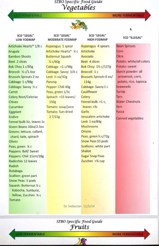 - La diète SIBO spécifique (SIBO specific food guide de la Dr Siebecker)