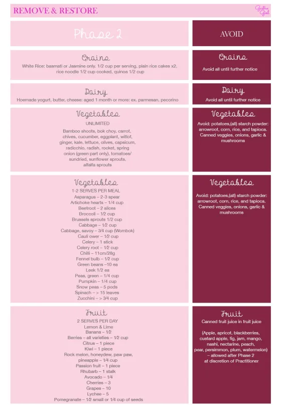 La diète devient plus diversifiée mais reste encore pauvres en fodmaps. C’est dans cette phase 2 que le traitement antimicrobien a lieu, cela permet d’avoir moins de die off et en même temps, les antibiotiques sont plus efficaces lorsque la diète est moins stricte. Durant cette phase, on continue le soutien de la digestion et la réparation du leaky gut. Par la suite, au fur à mesure de la guérison de l’intestin, les aliments enlevés sont progressivement réintroduit.
