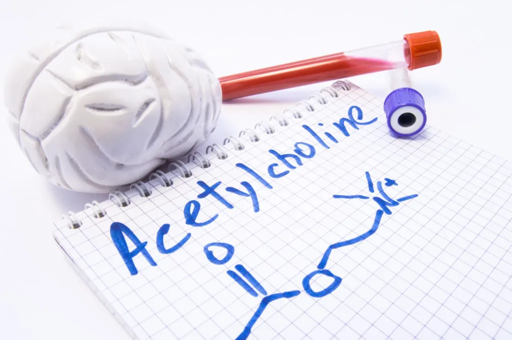 L’acétylcholine est un neurotransmetteur excitateur qui déclenche la contraction musculaire et stimule l’excrétion de certaines hormones. Au niveau de notre cerveau il est impliqué dans l’éveil et l’attention. Il est important pour nos fonctions cognitives et nous permet de nous concentrer et d’avoir des pensées claires.