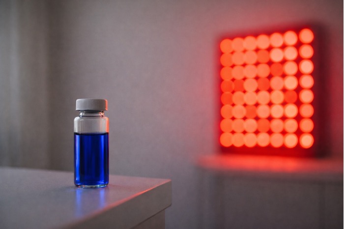 L’association bleu de méthylène et lumière rouge renforce les effets thérapeutiques. En effet, le bleu de méthylène absorbe intensément la lumière rouge autour de 660 nm. En thérapie photodynamique, ce couple bleu de méthylène + lumière rouge produit du singulet d’oxygène, capable de tuer bactéries, virus ou cellules tumorales : on l’utilise pour désinfecter du sang, traiter certaines infections ou comme adjuvant antitumoral (18).